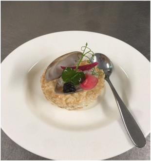 The Sorbetto is also very Italian in its ingredients. At the same time it is the product of a fusion including the Italian berries, the lime (imported in pulp by Italy though lime is not grown in Europe except in small quantities in the Spanish Canary islands or in some Dutch controlled islands in the Caribbean). This remarkable sorbet was topped by a genuinely Italian Limoncello syrup. I would encourage the chef to replicate this nice creation in any future culinary event.