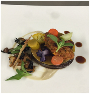 From the Abdally farms to your table tonight, the baby greens with delicious roasted cherry tomatoes were as fresh as could be. To get this beautiful dish before you, ten chefs worked on each plate, garnishing and drizzling the salad with the wild berry vinaigrette minutes before serving.