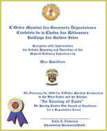 The Bailli or Dinner Chair should express the Bailliage's appreciation and may elect to award presentation plates, plaques, certificates of merit, and/or gifts to the Chef and other members of the staff. The National Administrative Office has Chaîne pewter and china plates available as well as preprinted certificates of merit. Alternately, Bailliages may have these items designed themselves.